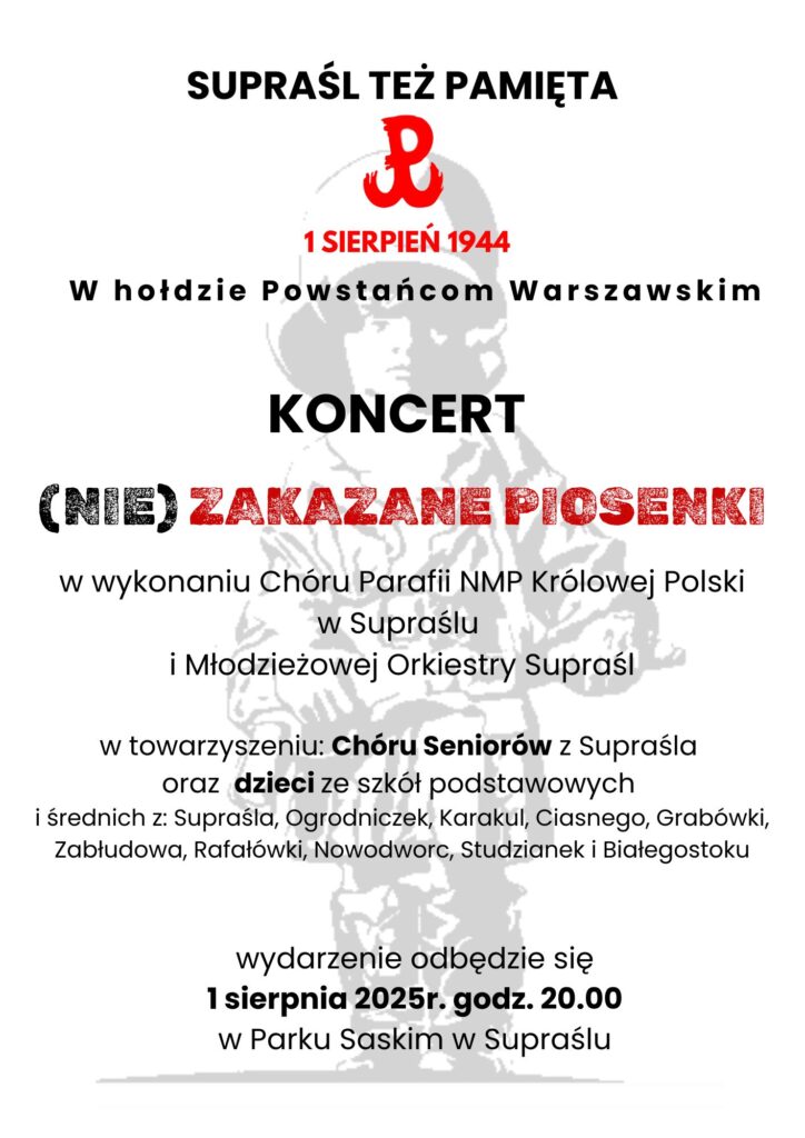 (NIE) ZAKAZANE PIOSENKI - Koncert w hołdzie Powstańcom Warszawskim Napisane przez Paweł Zakrzewski w dniu 30 lipca, 2025. 8:1 SLOW FEST 22 lipca, 2025 Światowe Mistrzostwa w Pieczeniu Babki i Kiszki Ziemniaczanej 2 sierpnia, 2025